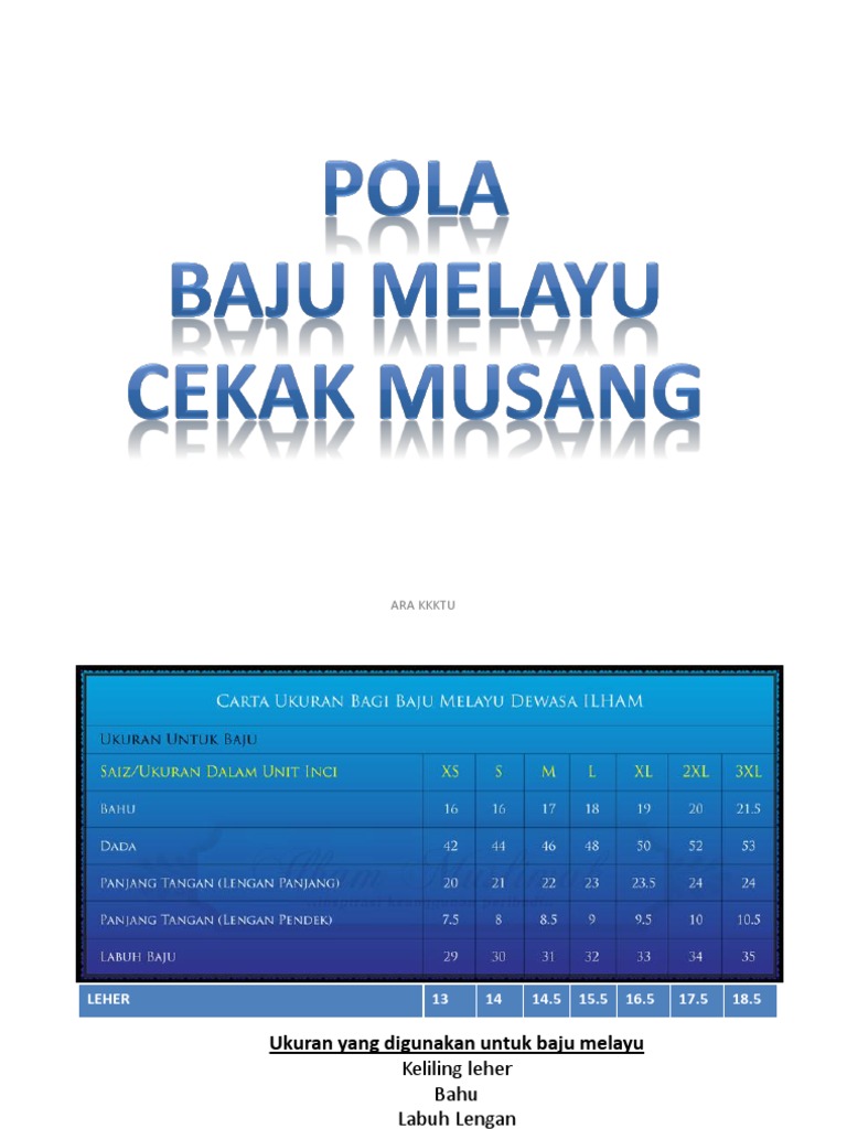 Ukuran labuh baju yang dikehendaki 36inch 1-6. Pola Baju Melayu. Kemudian buat sketsa model baju sesuai keinginan.