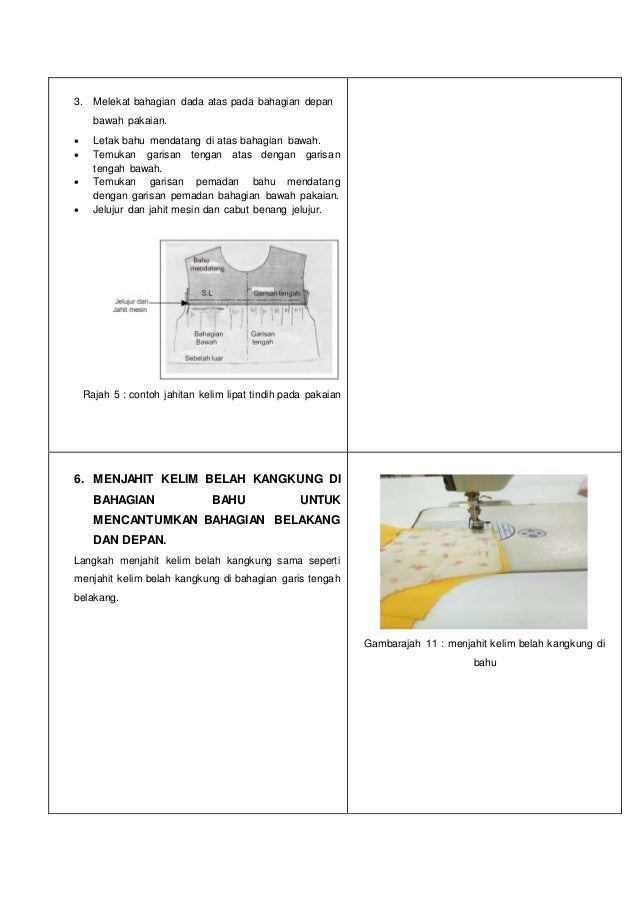 Reka Bentuk dan Teknologi RBT Gradelevel. Langkah Langkah 6 Rajah Kerja Menjahit kelim sisi dengan kelim belah Kelim belah kangkung. M - Cape pada dasarnya adalah bahagian yang terpisah dari pakaian digunting lingkaran atau.