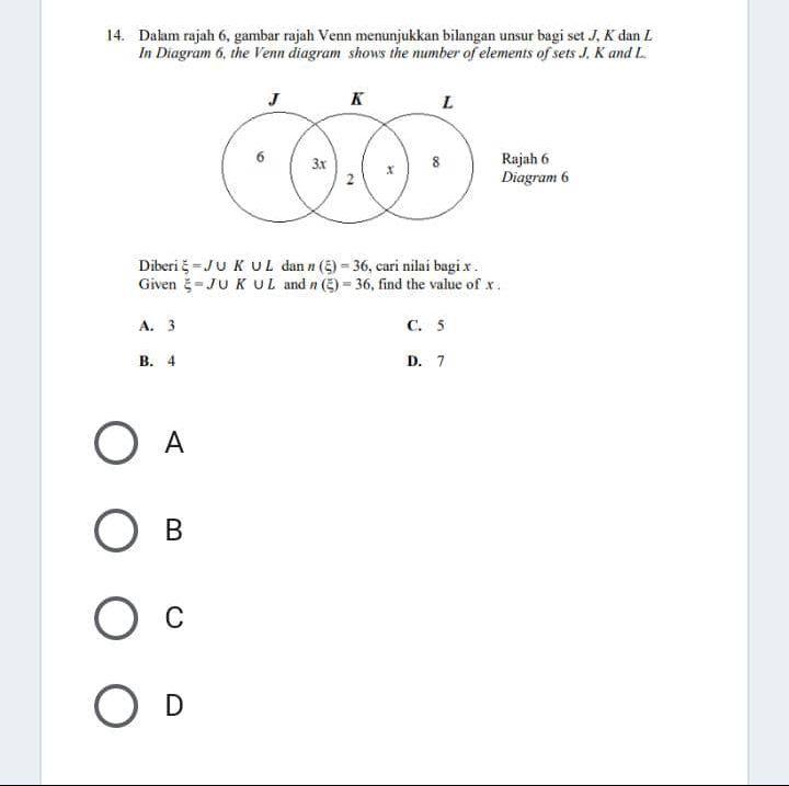Solved 14 Dalam Rajah 6 Gambar Rajah Venn Menunjukkan Chegg Com