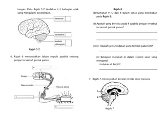 22 Sistem Saraf 221 Mengenal pasti jenis sistem saraf manusia. Susunan saraf pusat dan susunan saraf tepi d. D saraf yang bercabang dari sistem saraf pusat Soalan Subjektif 1.