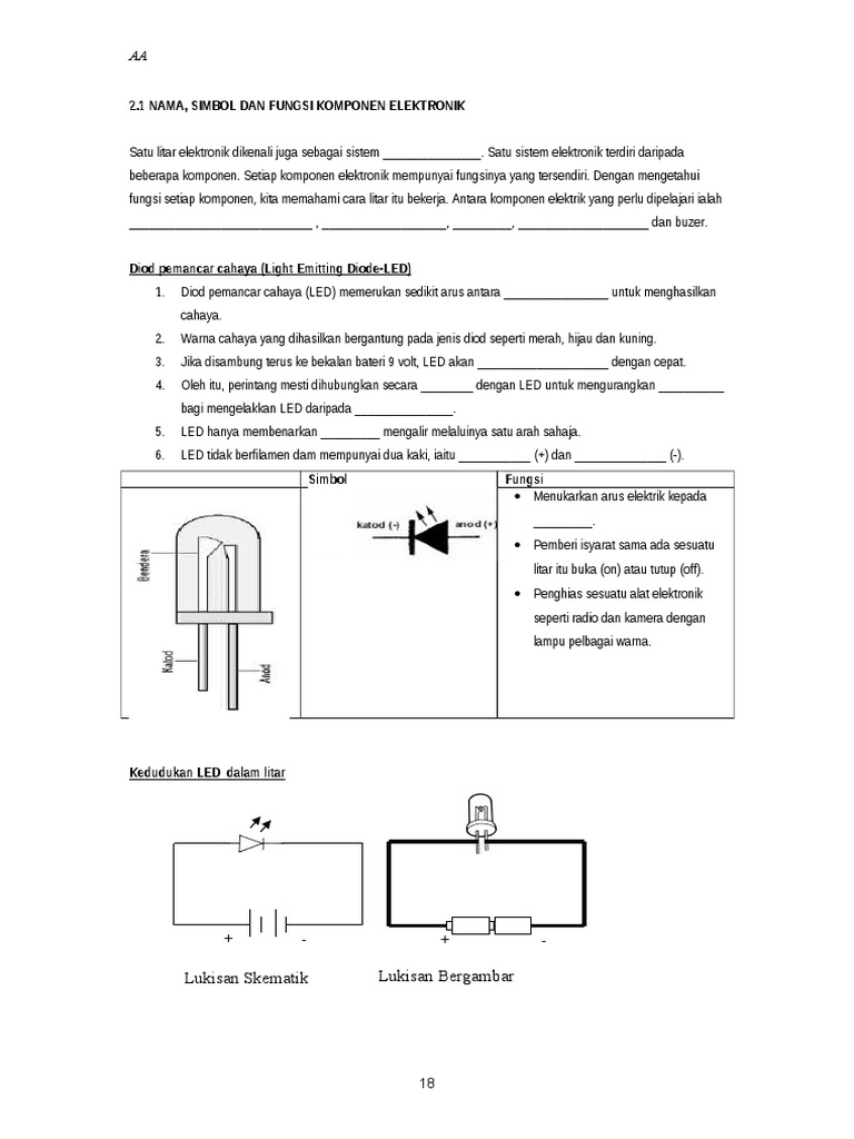 Kelipkan LED tersebut bergilir-gilir Kod Arahan Fungsi tone ___ ___ ___one___ Lukiskan rajah skematik yang melibatkan sambungan. This preview shows page 21 - 26 out of 37 pages. 41 Gambar rajah pemandu untuk lampu LED.