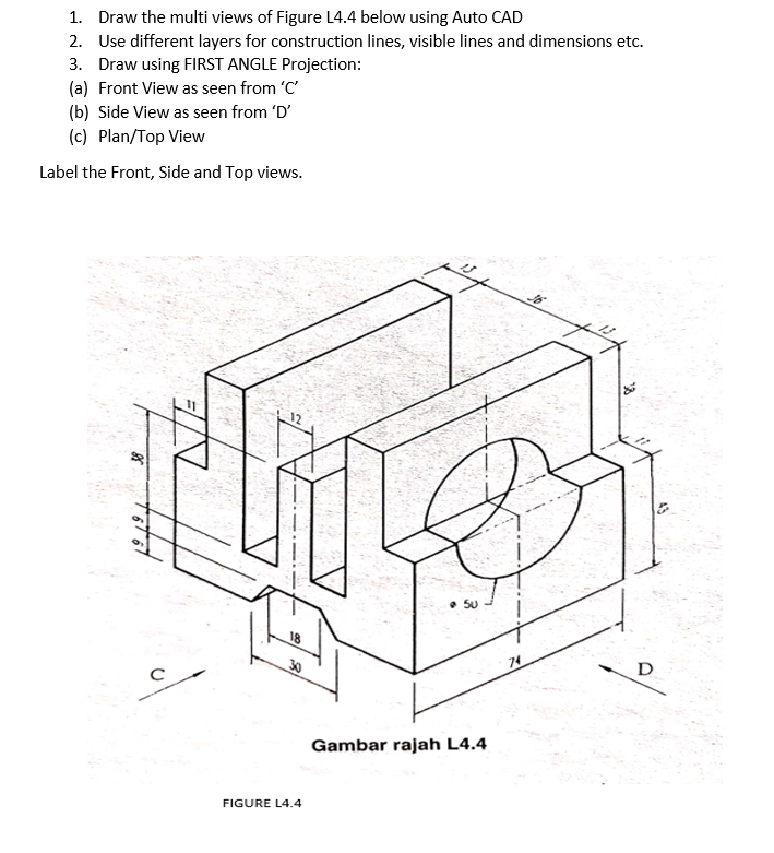 Solved 1 Draw The Multi Views Of Figure 14 4 Below Using Chegg Com